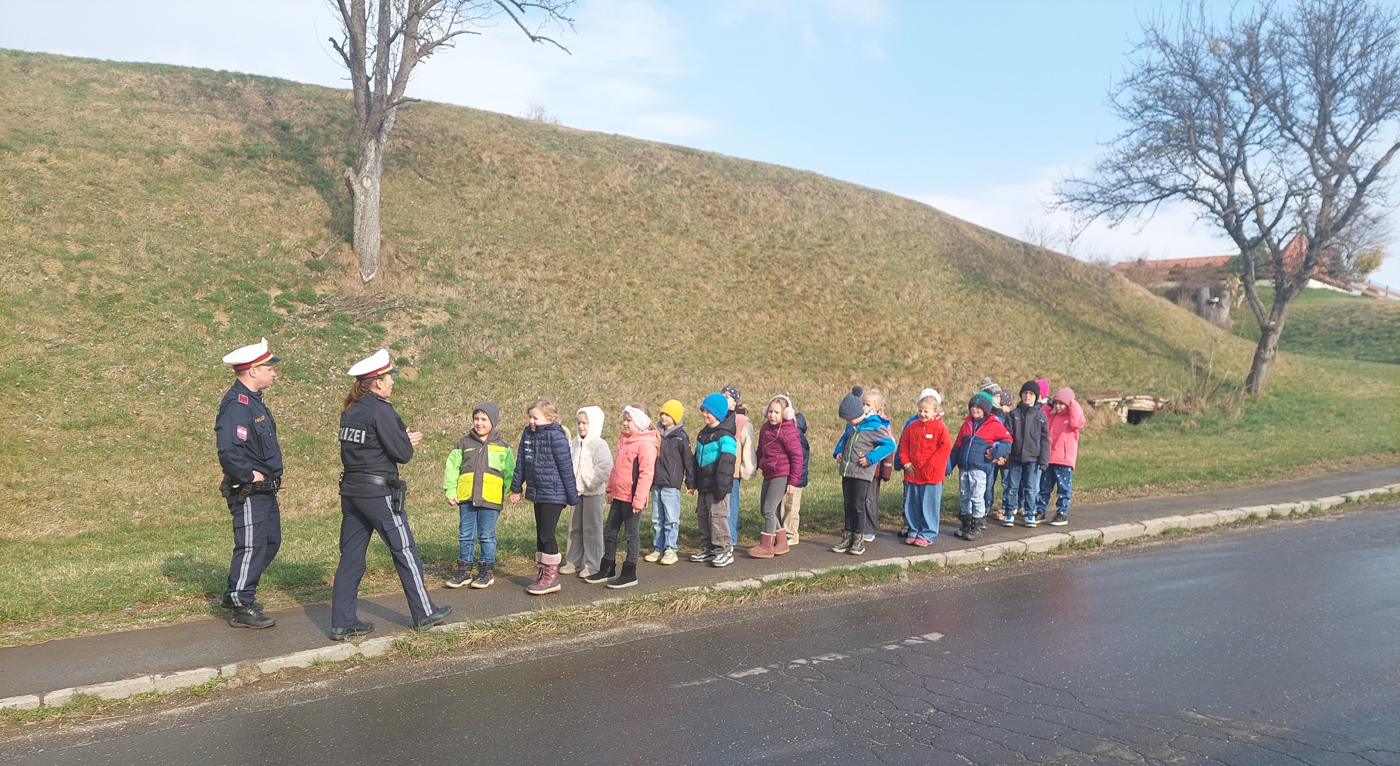 Gemeinsam mit zwei Polizeibeamten übten die Kinder